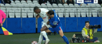 第48分钟,吕焯毅禁区外突破倒地,随后被吹手球又被踢到头部,但比赛继续,坚韧不拔。