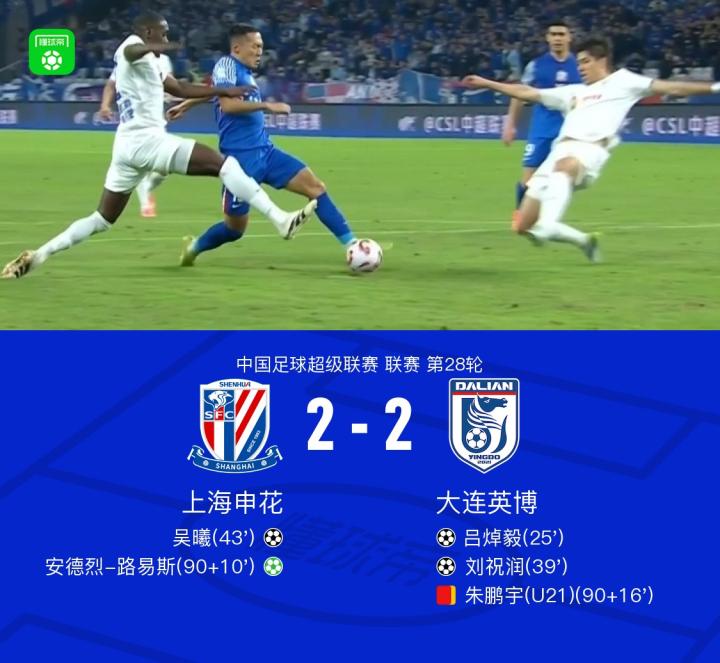 申花2-2英博落后榜首2分继续排第三,路易斯绝平,吴曦破门+造点